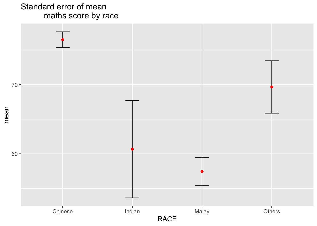The code chunk below is used to compute the lower and upper limits for 95% confidence interval.