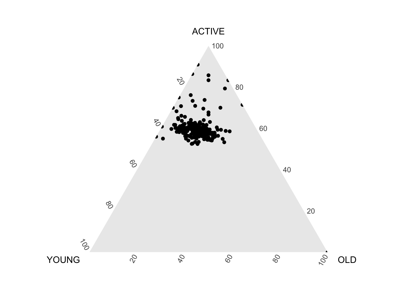 ggtern(data=agpop_mutated,aes(x=YOUNG,y=ACTIVE, z=OLD)) +