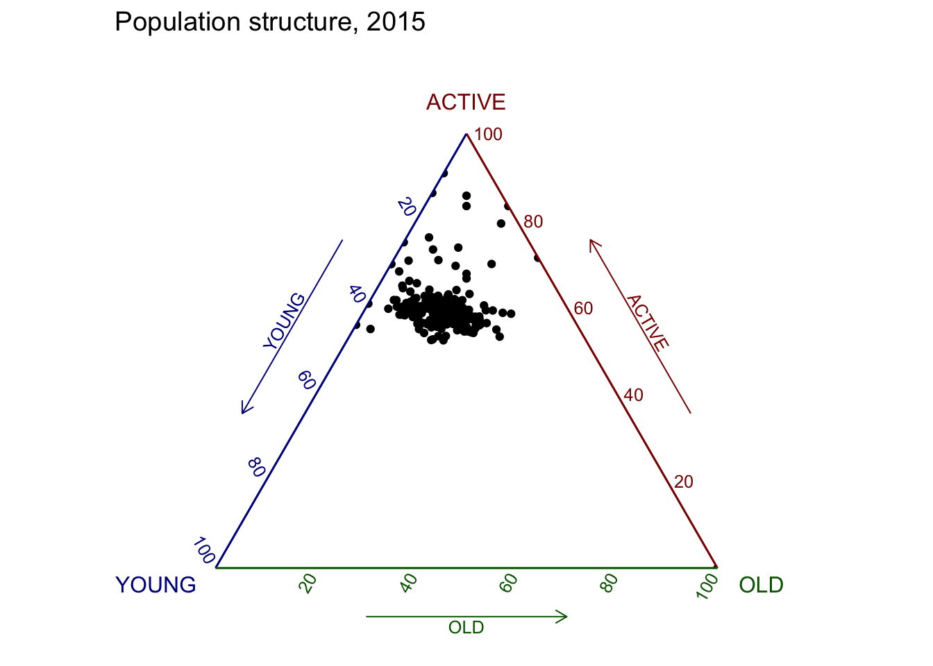ggtern(data=agpop_mutated, aes(x=YOUNG,y=ACTIVE, z=OLD)) +